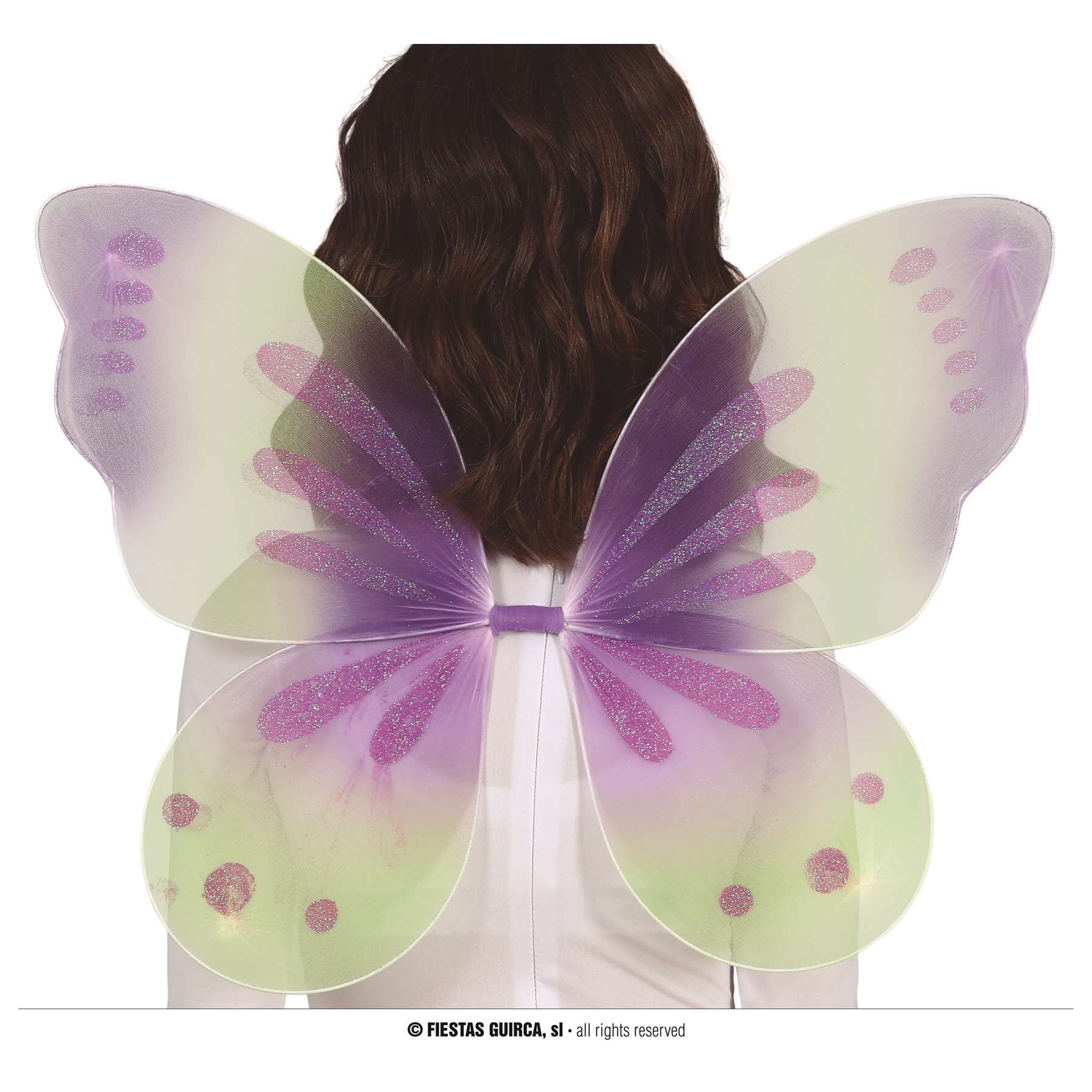 Alas en tonos lilas adornadas con motivos de purpurina. Es genial para tu disfraz de hada, mariposa, campanilla, duendecilla, etc.