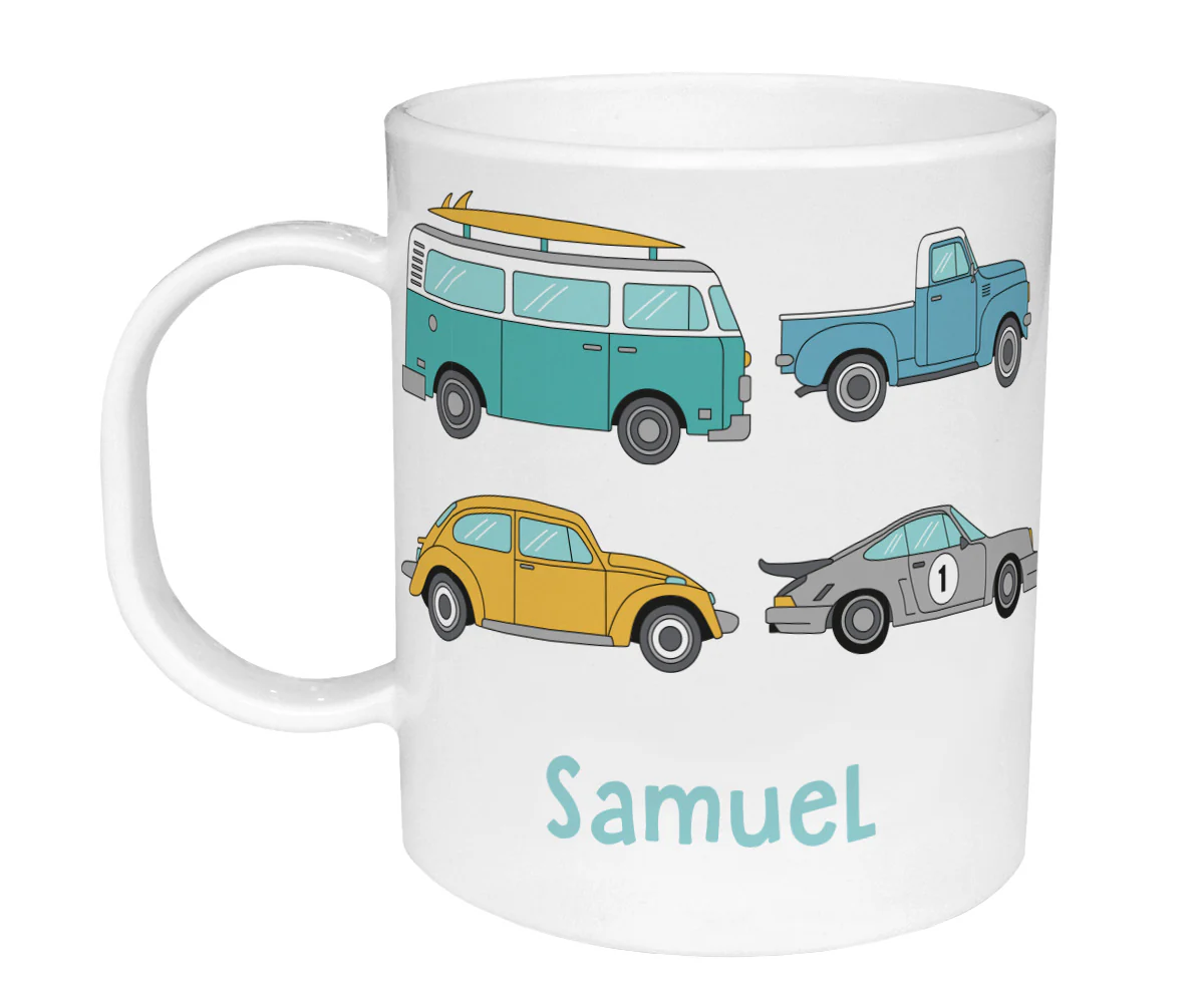 La taza personalizada de plástico es una opción perfecta para los más pequeños. Su diseño exclusivo con motivos de coches la convierte en un producto atractivo y divertido para el desayuno o para llevar a la escuela o guardería.