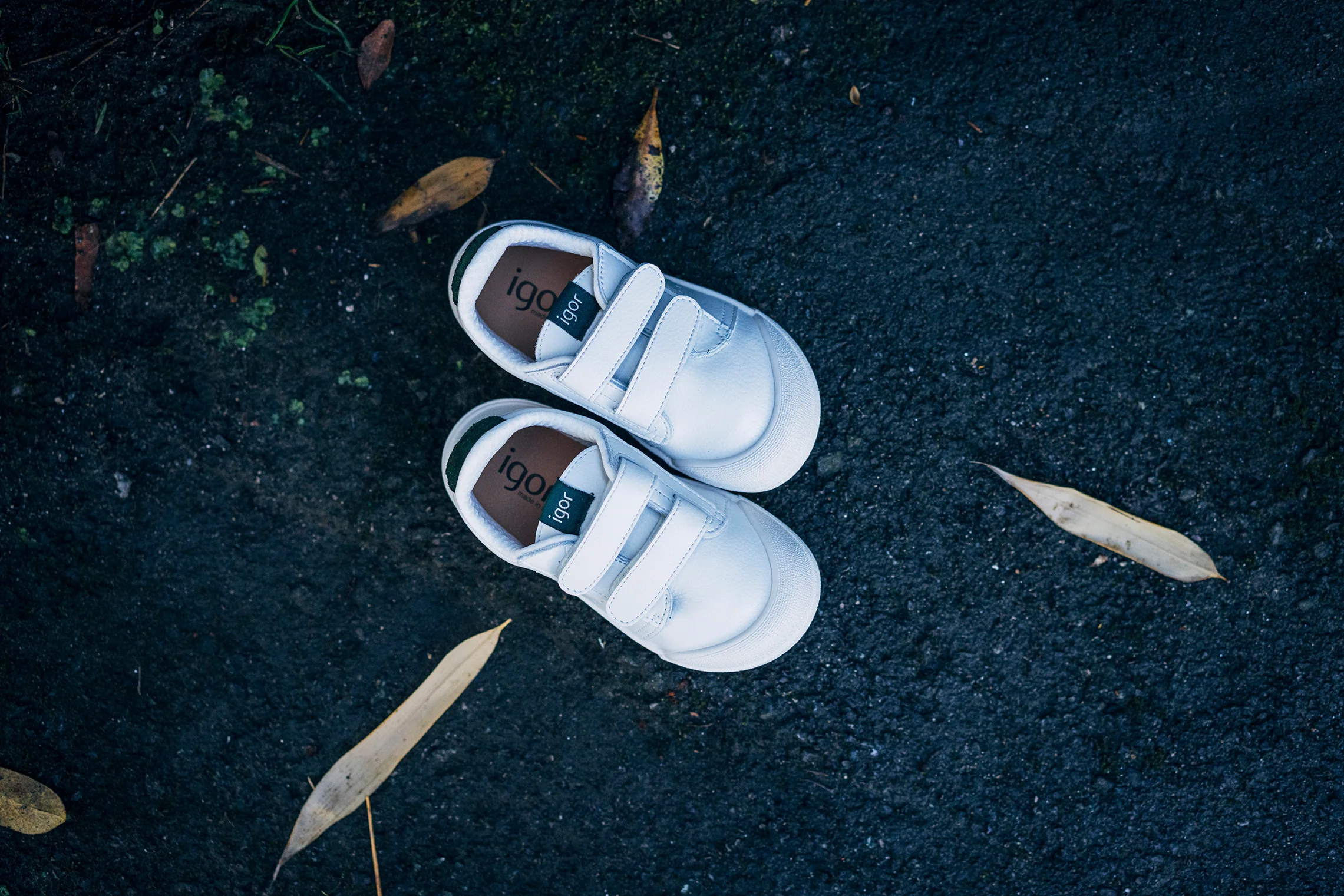 Tenis de piel IGOR; son deportivos en cuero para niños, su diseño barefoot de suela plana, promueve un desarrollo natural del pie, y su estructura es flexible, blandita y ligera. El diseño con tiras ajustables de cierre de velcro, facilita un uso práctico y rápido.
