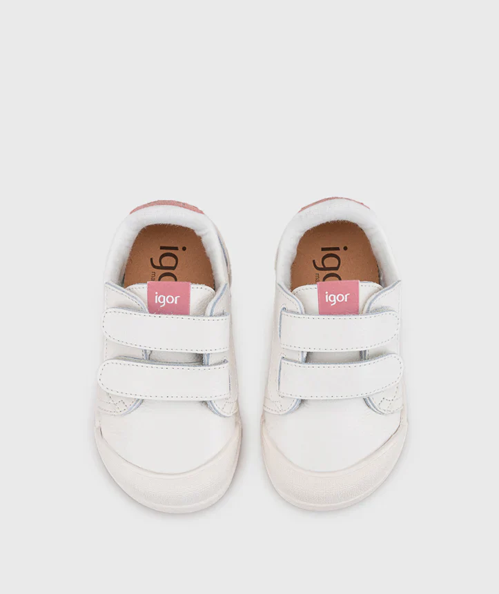 Tenis de piel IGOR; son deportivos en cuero para niños, su diseño barefoot de suela plana, promueve un desarrollo natural del pie, y su estructura es flexible, blandita y ligera. El diseño con tiras ajustables de cierre de velcro, facilita un uso práctico y rápido.