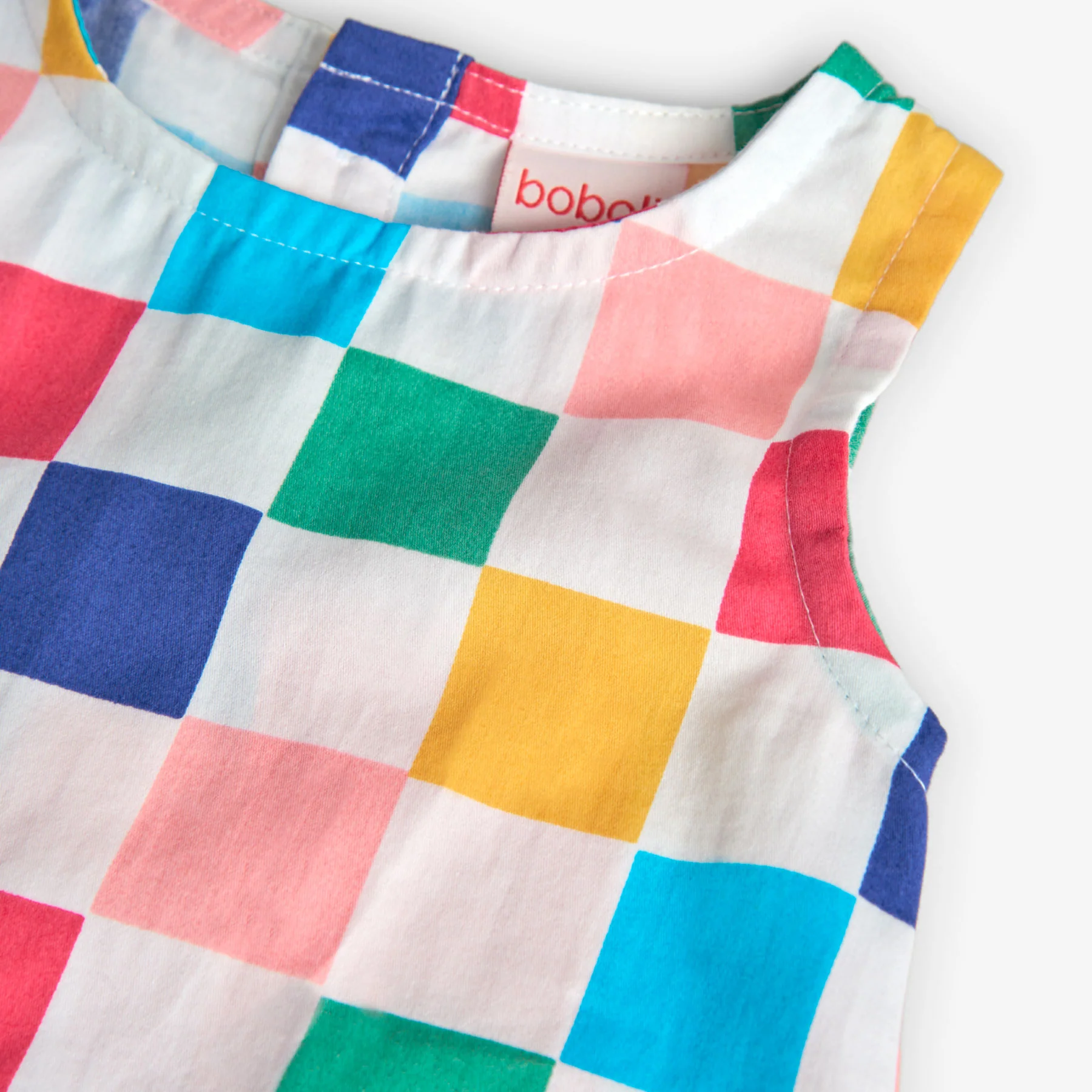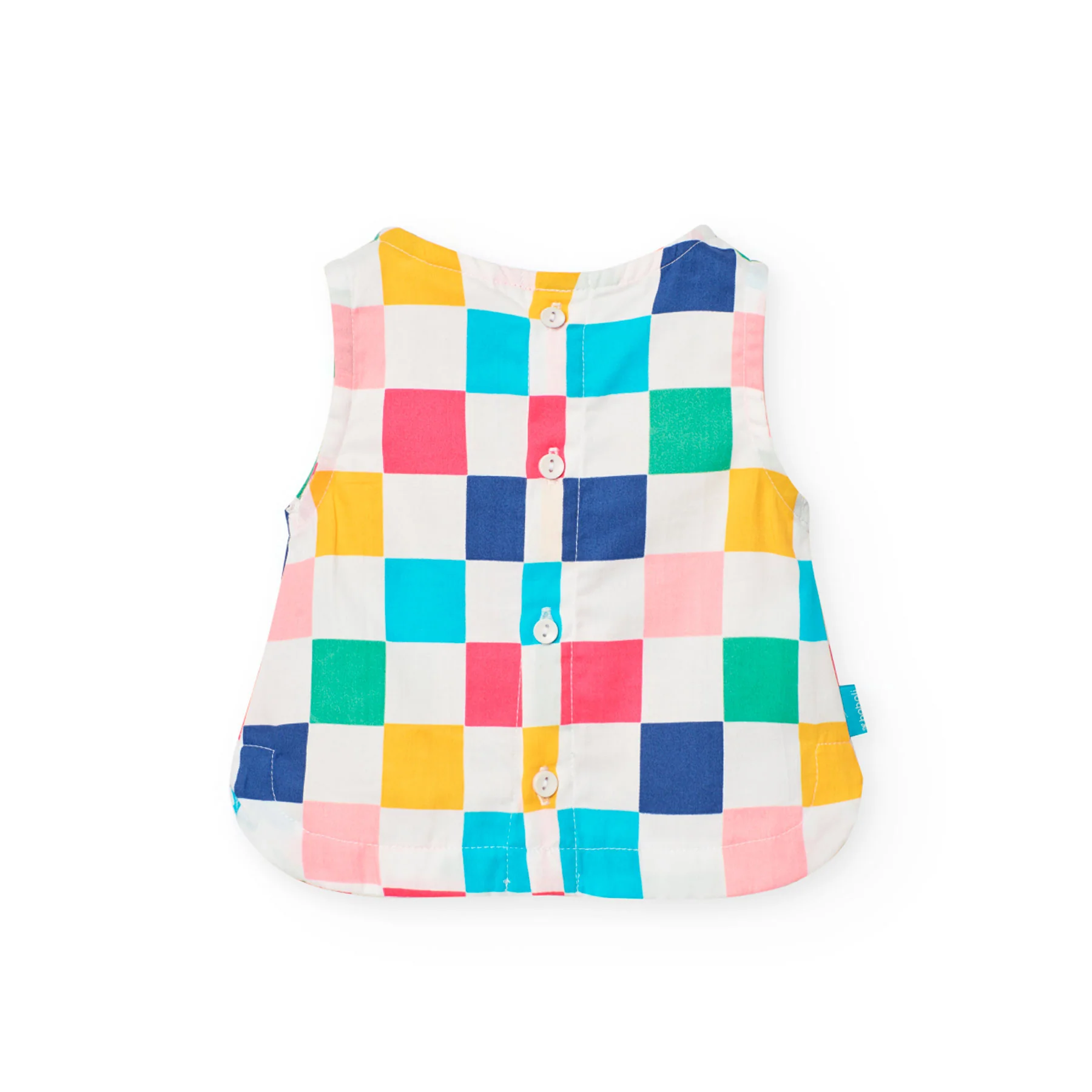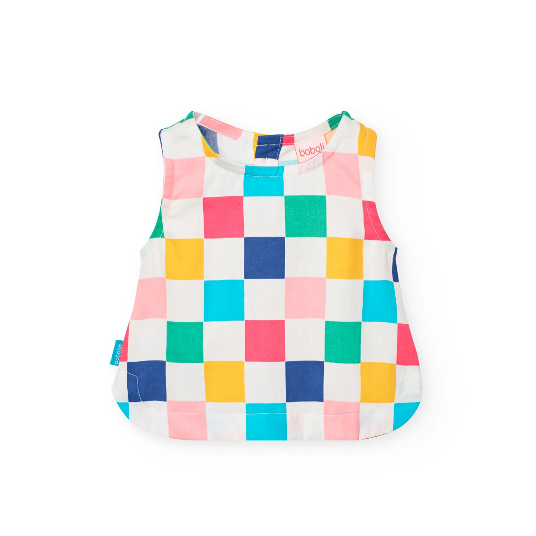 Este es un top de satén para niña con un vibrante estampado de cuadros en colores multicolor, ideal para el uso diario en climas cálidos. Su tejido suave y ligero proporciona comodidad y frescura. El diseño sin mangas es perfecto para los meses de verano.
