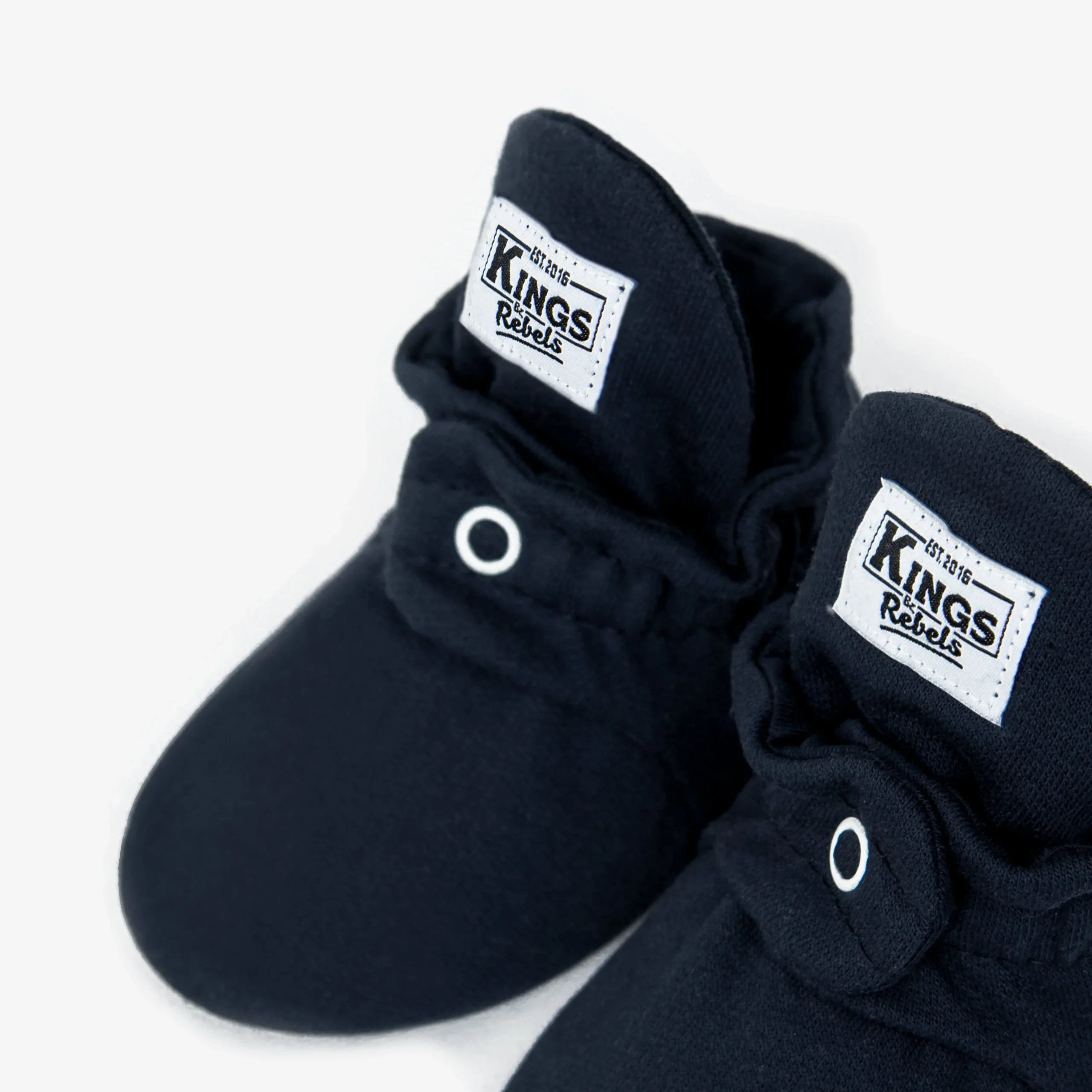 Las botas de Kings & Rebels están diseñadas con un sistema de botones que te permite vestir a tu bebé de forma fácil y rápida, sin complicaciones. Además, el sistema de cierre de las botas garantiza que éstas permanezcan incluso en los pies de los bebés más activos.
