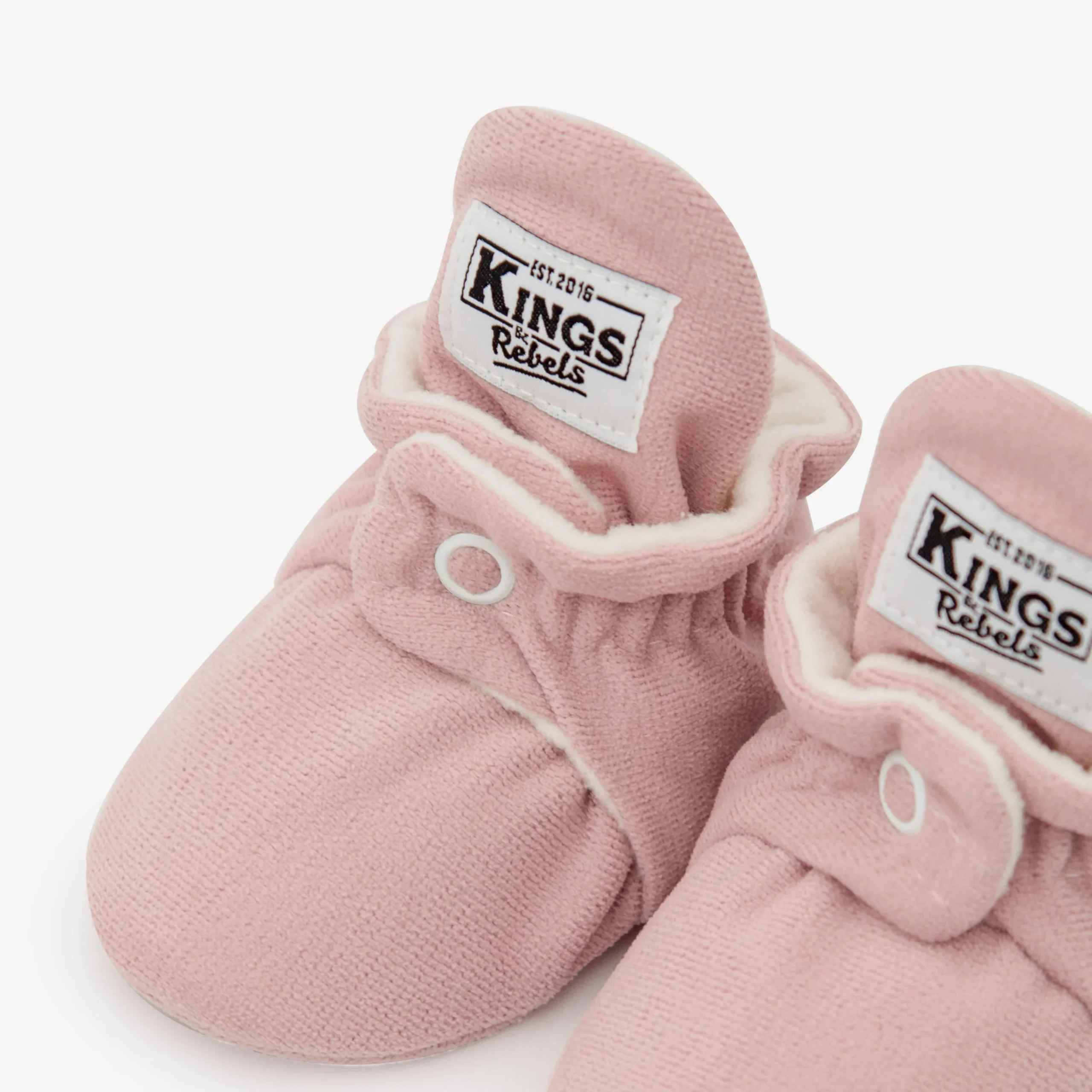 La colección Gamuza está confeccionada con una gamuza look microfibra en la parte exterior y con un polar en la parte interior, para garantizar que los pies de los bebés se mantengan cómodos y calientes.